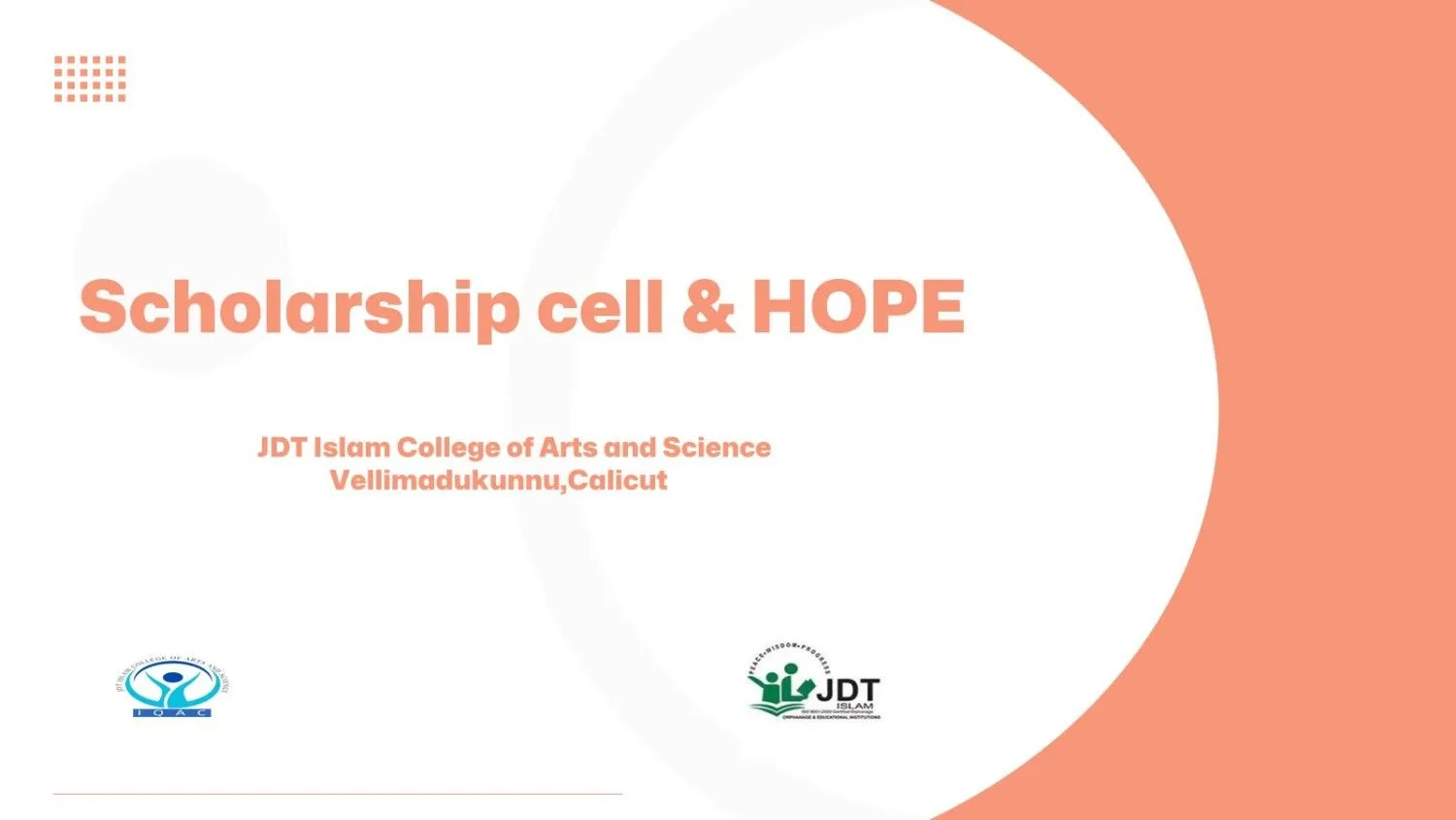 JDT Islam College of Arts & Science has been actively involved in promoting education by offering various scholarships to deserving students. National Scholarships, E-grants for Fisheries and E-grants for SC/ST are provided here. Gathering information related to the application process for various sponsored scholarship schemes, informing students about procedures and deadlines, and maintaining records of scholarships applied by students across different categories, including the maintenance of the details of the students with fee concession are the main activities for this cell. The HOPE project at our college is a noble initiative designed to uplift underprivileged and orphaned students in their academic pursuits. This program offers free education to financially disadvantaged students, accompanied by dedicated monitoring and mentoring of the students to ensure their academic success and overall development. The main aim of this project is to provide these students with opportunities for a better future through accessible and supportive education.